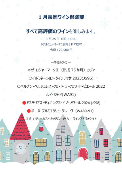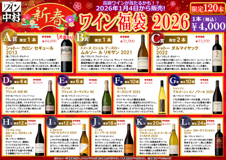 恒例のワイン福袋が新春4日発売、長岡ワイン倶楽部1/25(日)開催。(1月のワイン倶楽部詳細は、こちらから→★)